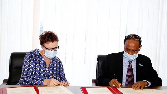 Wasiirka Maaliyadda Soomaaliya ayaa saxiixa heshiiskaa deyn cafinta ah isaga oo la saxiixday Safiirka Dowladda France ee dalka Kenya Aline Ménager.