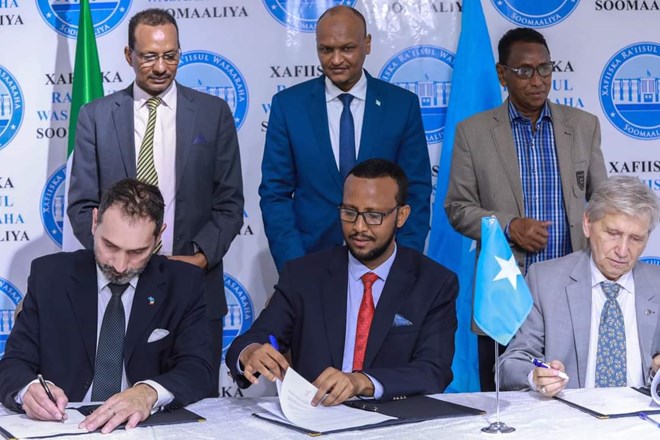 newsinsideSaxiixa heshiiskan oo uu goobjoog ka ahaa siihayaha R/Wasaare ku-xigeenka ayaa waxaa Dowladda Soomaaliya u siixay siihayaha Wasiirka Beeraha Siciid Xuseen Ciid, halka Dowladda Talyaanigana u saxiixay Safiirkooda Alberto Vecchi iyo Madaxa Hay’adda horumarinta Talyaaniga Guglielmo Giordano.