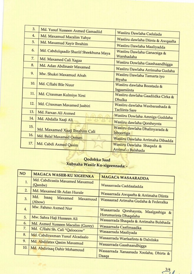 Halkaan hoose ka akhriso liiska wasiiradda.