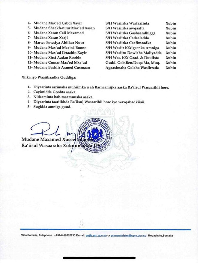 newsinsideGuddigaan oo ka kooban 13 xubnood ayaa loo xilsaaray inay diyaariyaan aaska qaran ee raysal wasaarihii hore Cali Khaliif, iyadoo aaskiisa loo maamuusidoono si ka duwan aasaskii qaran ee loo sameeyay madaxdii hore maadaama marxuumku u geeriyooday Covid19.