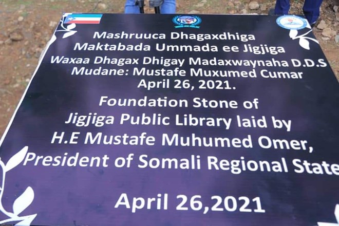 Isniin, April, 26, 2021 (HOL) - Waxaa maanta magaalada Jigjiga laga dhagax dhigay maktabad caalami ah, taas oo loogu magac daray Maktabadda Umadda.