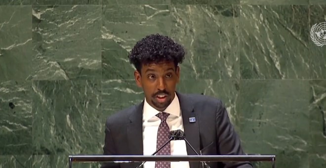 Axad, December, 12, 2021 (HOL) - Xoghayaha 1-aad ee Safaaradda Soomaaliya ee dalka Mareykanka Maxamed Cabdiraxmaan Cumar ayaa Qaramada Midoobay ugudbiyay warbixin looga hadlayay xaladda Abaaraha dalka ka jira iyo dadaallada Dowladda Federaalka Soomaaliya ay ugu gurmaneyso dadka ay abaaruhu saameeyeen.
