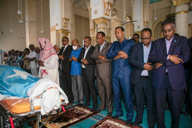 Isniin, Feberaayo, 01, 2021 (HOL) - Ra'iisal Wasaaraha Xukuumadda Soomaaliya Maxamed Xusseen Rooble iyo xubno ka tirsan labada Golle ee dowladda ayaa ka qeybgalay salaada Jinaasada alle ha u naxariisteen Gen Maxamed Nuur Galaal oo ka mid ahaa dadkii lagu dilay weerarkii Hotelka Afrik ee magaalada Muqdisho.