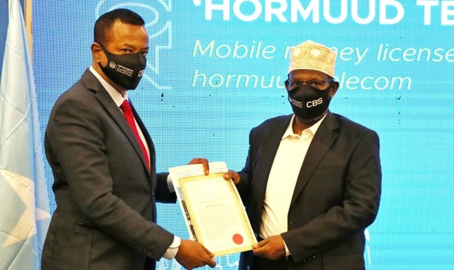 Sabti, Feberaayo, 27, 2021 (HOL) - Bankiga Dhexe ee Soomaaliya ayaa maanta shirkadda Hormuud oo kamid ah shirkaddaha isgaarsiinta Soomaaliya siiyay liisankii ugu horreeyay ee adeegga lacagaha la iskugu diro teleefoonnada.