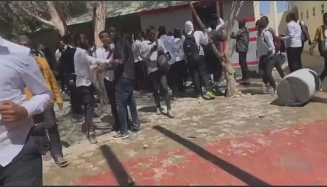 Hadaba ardayda wax ka barata dugsiga ayaa markii ay ka warheleen in Maxamed dugsiga looga eryay qoraalka faalada ah ee uu ka qoray dugsiga bilaabay mudaharad rabshado wata.