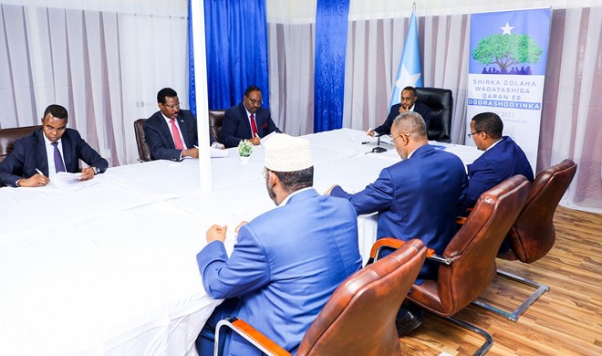 newsinsideWaxay saaxiibada Beesha Caalamka aad u bogaadiyeen Raysal wasaaraha Soomaaliya Maxamed Xuseen Rooble oo ahaa hoggaamiyaha shirkii u dhaxeyay dowlada Fedaraalka, dowlad goboleedtada dalka iyo gobolka Banaadir.