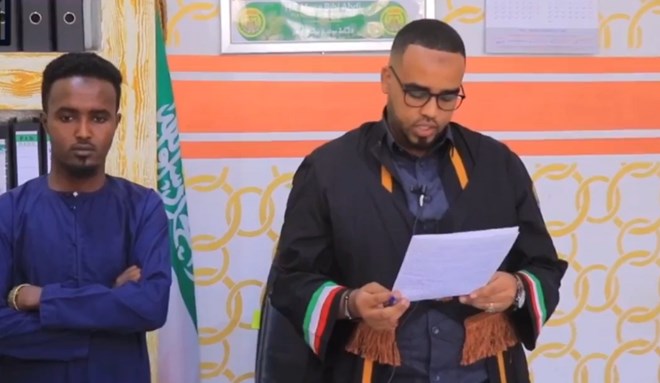 Garsooraha ayaa ku dhawaaqay xukun iskugi jira xadhig iyo ganaax "Maxkamadu waxay ku xukuntay midkiiba hal sanno oo xadhig ciqaabeed ah, iyo ganaac maaliyadeed oo dhan 3 milyan oo Somaliland shilin ah, oo lagu shubayo qasnada dowlada, hadii danbiilayaashu ay bixin wayaana loogu badalayo xadhig ciqabeed u dhigma".