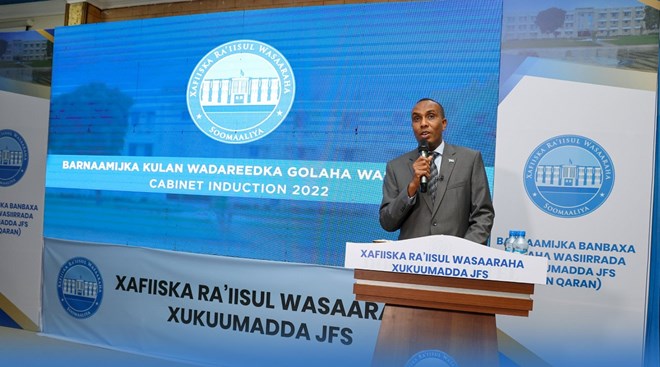 newsinside“Ra’iisul Wasaaraha Soomaaliya oo soo xiray Kulan-Wadareedka Golaha Xukuumadda Federaalka Soomaaliya, ayaa Wasiirrada ku adkeeyey in ay si daacadnimo leh ugu shaqeeyaan shacabka Soomaaliyeed, horseedna u noqdaan isbeddel muuqda oo ka hana-qaada dalka.” ayaa lagu yiri qoraal uu baahiyay xafiiska oo intaa ku daray “Ra’iisul Wasaaraha ayaa tilmaamay in Xafiiskiisu uu gacan buuxda ku siinayo dhammaan Wasaaradaha Xukuumadda sida ay u gudan lahaayeen waajibaadkooda qaran, isagoo kula dardaarmay in ay ka shaqeeyaan xoojinta kalsoonida shacabka Soomaaliyeed ay ku qabaan dowladnimadooda, taas oo ku imaanaysa xaqiijinta amniga, bixinta adeegyada aas-aasiga ah iyo horumarinta kaabeyaasha dhaqaalaha.”