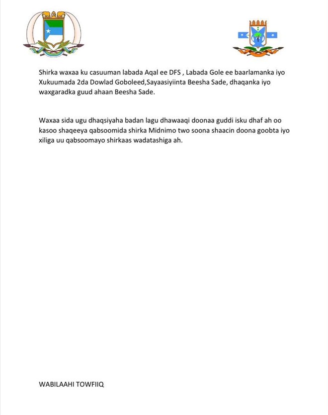Hoos ka akhriso qoraalka ay soo saareen labada madaxweyne ku xigeen:-