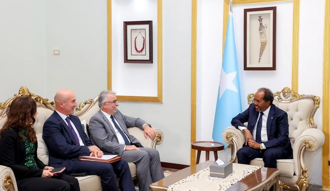 Wakiilada Gaarka ah ee Turkiga Aykut Kumbaroğlu iyo Norway Heidi Johansen ayaa ku bogaadiyey madaxweyne xasan Sheikh, sida ay uga go’an tahay xal u helidda caqabadaha dib u dhigay nolasha dadka Soomaaliyeed oo ay ugu horreyso khilaafaadka siyaasadeed iyo dib u heshiisiin la’aanta bulshada.