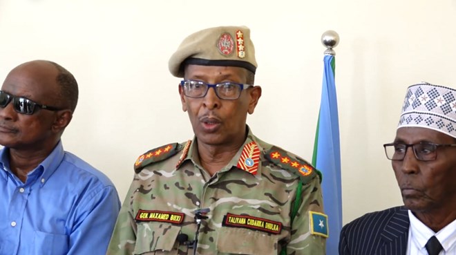 newsinsideJenaraal Abuukar Xaaji Waraame Xuud oo warbaahinta la hadlaayay isagoo dhinacyadiisa ay taaganayeen guddoomiyaha maamulka gobolka Hiiraan Cali jeyte iyo Taliyaha ciidanka dhulka Jenaaal Maxamed Tahliil Biixi iyo taliyeyaal kale oo ka tirsan ciidanka dowladda Soomaaliya ayaa shegay in la heshiin karo lana dagaalami karo, isagoona si cad u sheegay inuu wali u taagan yahay raadinta xaqa ka dhaman reer Hiiraan.