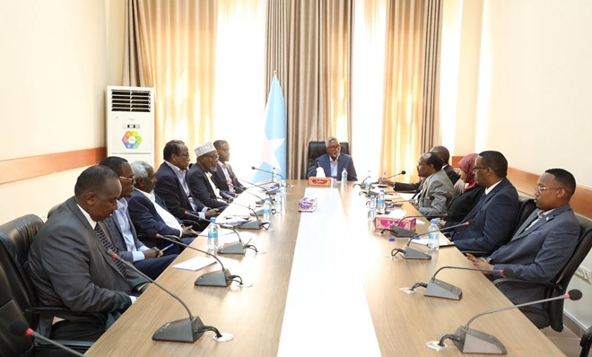 Sabti, May, 21, 2022 (HOL) - Guddoomiyaha Golaha Aqalka sare ee Baarlamaanka Fedaraalka Soomaaliya Cabdi Xaashi Cabdullaahi oo ay wehliyaan guddoomiye ku xigeenadda Golaha Aqalka sare ayaa Maanta xarunta Golaha kulan kula yeeshay guddoonadda Golayaasha sharci dejinta dowlad goboleedyada dalka.