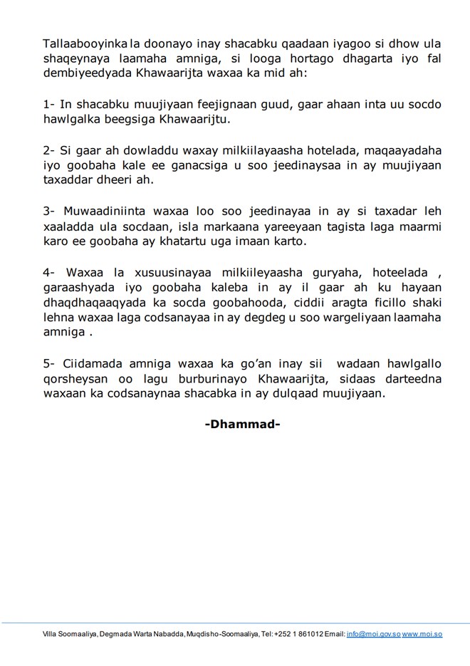 Sidoo kale waxay dowladdu shacabka ugu baaqday inay yareeyaan tegista goobaha khatartu uga imaan karto.