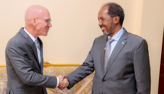 newsinsideMadaxweyne Xasan Sheikh ayaa ku bogaadiyey danjire James Swan doorka uu ka qaatay taageerada Soomaaliya gaar ahaan gurmadka abaaraha, dagaalka ka dhanka ah kooxda Alshabaab.