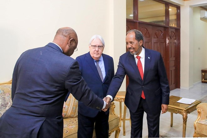 newsinsideMadaxweyne Xasan Sheekh Maxamuud ayaa la wadaagay Martin Griffiths qorsheyaasha dowladda ee ku aaddan wax ka qabashada arrimaha bani'aadamnimada, iyo saameynta abaaraha ka jira dalka iyo qeybo ka mid ah gobolka geeska Afrika.