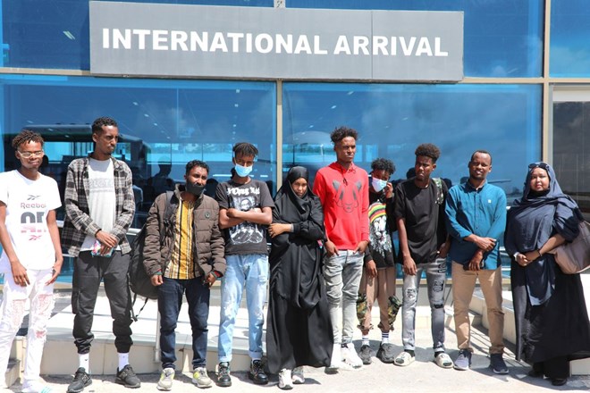 Talaado, September, 27, 2022 (HOL) - Xafiiska Ergayga gaarka ah ee dib u soo celinta Muhaajiriinta iyo Carruurta ee dowladda Soomaaliya ayaa Maanta dalka dib ugu soo celiyey ilaa sagaal dhalinyaro ah oo sanado badan gacanta ugu jiray Magafaha dalka Liibiya oo ay kasoo baxsadeen, kadibna tagay xarunta Safaaradda Soomaaliya ee ku leedahay magaalada Tripoli si ay dalkooda dib ugu soo laabtaan.