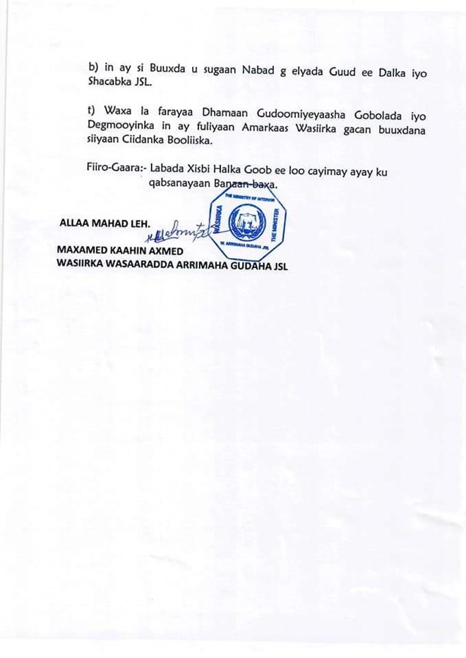 Kaahin sidookale, waxa uu ciidamada booliiska faray in ay ilaaliyaan nabadgalyada muwadiniinta mudaharaadaysa, dhinaca kalena ay talaabo ka qaadaan cidkasta oo ku kacda fal amni daro.
