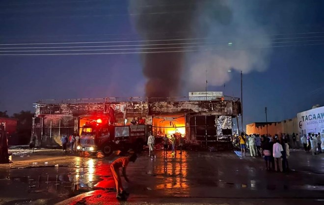 Laamaha ammaanka iyo ciidamada dab-damiska ayaa u soo gurmaday shirkadda, si ay u xakameeyaan dabka, si aanu ugu faafin dhismayaasha kale ee ku hareeraysan.