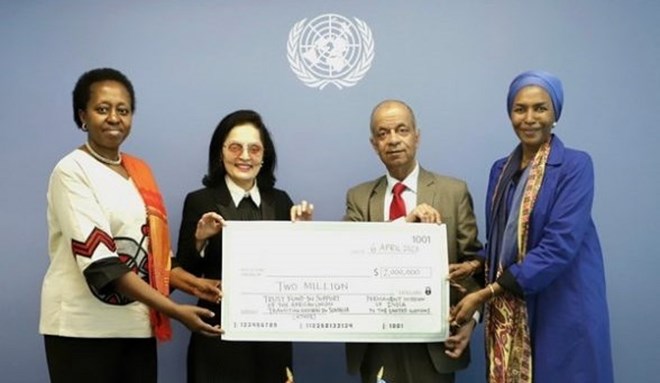 Ergayga Joogtada ah ee Hindiya u qaabilsan Qaramada Midoobay, Ruchira Kamboj ayaa barteeda twitter-ka ku sheegtay in dowladda India ay ku wareejisay jeeg dhan US$ 2 milyan oo loogu talagalay howlgalka Midowga Afrika ee Soomaaliya.