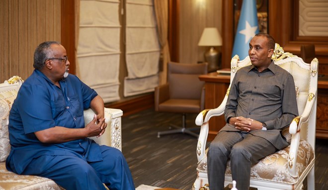 Sabti, April, 8, 2023 (HOL) - Raysal wasaaraha Xukuumadda Fedaraalka Soomaaliya Xamse Cabdi Barre ayaa Maanta kulan kula qaatay Xafiiskiisa magaalada Muqdisho Ergayga gaarka ah ee Xasilinta iyo Ilaalinta arrinaha Rayidka ee goobaha dagaalada Maxamed Cabdi Waare.