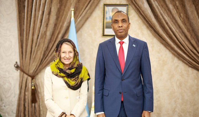 Danjiraha Midawga Yurub Ms Tiina Intelmann ayaa la wadaagtay Ra’iisul Wasaare Xamse in Midowga Yurub uu sii wadi doono barnaamijyada horumarinta uu ka taageero Somaliya.