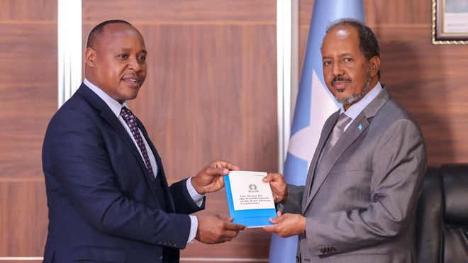 "Maanta waxaan bilownay howsha rasmiga ah ee xaqiijinta rasmiga ah ee ku wajahan gelitaanka Soomaali ee bulshada Bariga Afrika. Xoghayaha guud ee EAC Peter Mathatti