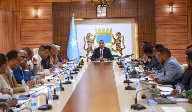 Arbaco, January, 4, 2023 (HOL) - Raysal wasaaraha Xukuumadda fedaraalka Soomaaliya Xamse Cabdi Barre ayaa Maanta shir guddoomiyay kulan looga hadlaayay xaalada amniga dalka iyo cunaqabteynta hubka ee mudada dheer saaran Soomaaliya.