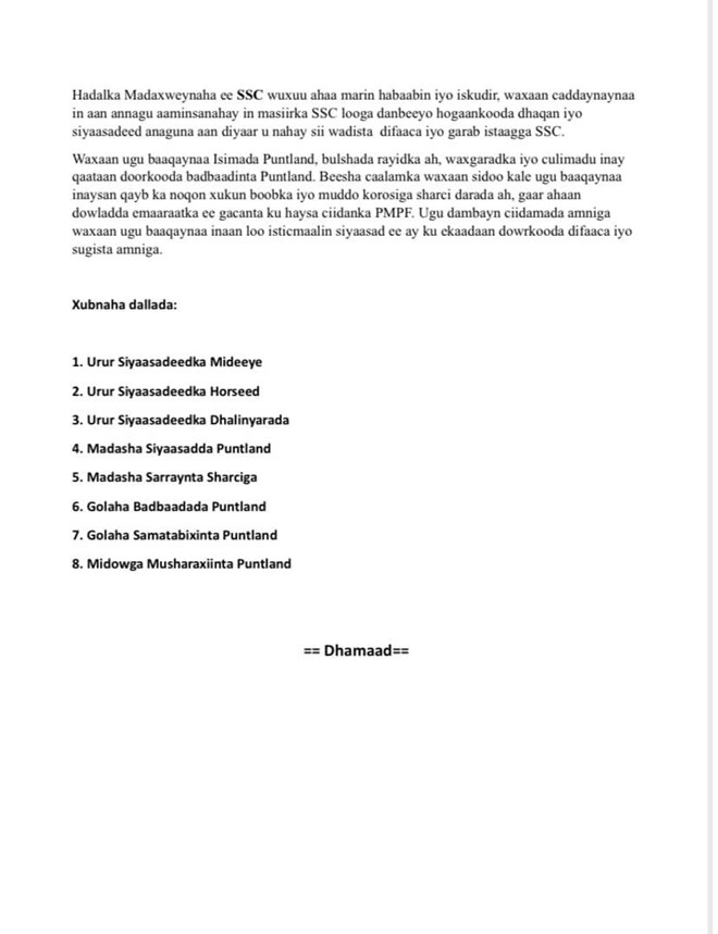 newsinsideWar saxaafadeed ay soo saareen kooxaha mucaaradku ayay ku sheegeen, in dhismaha guddiga doorashada Puntland loo maray sifo sharci darro ah, sidaas daraadeedna ay wax kaste oo ay soo saaraan yihiin sharci darro.