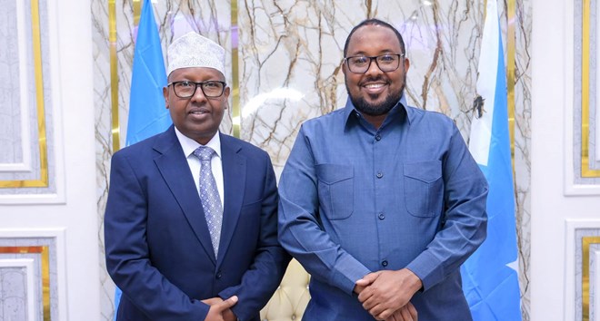 Isniin, October, 9, 2023 (HOL) - Wasiirka Wasaaradda Arrimaha Gudaha iyo dib u heshiisiinta Xukuumadda Fedaraalka Soomaaliya Axmed Macalin Fiqi ayaa maanta kulan gaar ah kula qaatay magaalada Muqdisho hoggaamiyaha SSC Khaatumo Cabdiqaadir Axmed Awcali Firdhiye oo dhawaan Muqdisho u yimid howlo shaqo.