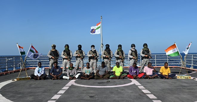 Hawlgalka oo qaatay 40 saacadood ayaa markabka dagaalka INS Kolkata wuxuu ku qasbay dhammaan 35-ka budhcad-badeedda ah inay is-dhiibaan, waxaana halkaas lagu badbaadiyay 7-shaqaale ah.