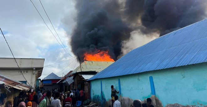 Suuqaan gubanaya ayaa ah Suuqa ganacsi ee ugu weyn magaalada Jowhar, waxaana dabka uu durba baaba'shay goobo ganacsi oo badan, hayeeshee wali si rasmi ah looma ogaan karo inta uu dhan yahay khasaaraha.