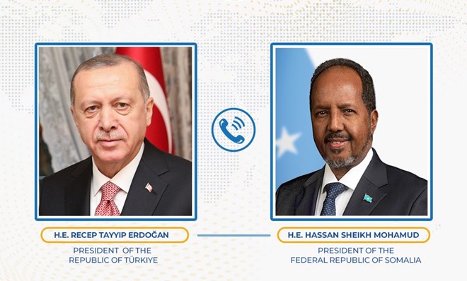Madaxweynaha dalka Turkiga Recep Tayyib Erdogan ayaa dhigiisa Soomaaliya Xasan Sheekh Maxamuud u xaqiijiyay in dowladda Turkiga ay ka go’an tahay garab istaaga madaxbanaanida, gobnimada iyo Midnimada dhuleed ee dalka iyo dadka Soomaaliyeed.