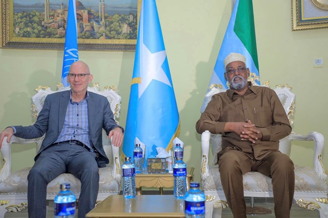 Axad, October, 13, 2024 (HOL) - Ku-simaha Ergeyga Gaarka ah ee Qaramada Midoobay ugu qaabilsan arrimaha Soomaaliya, James Swan oo weli ku guda jira la kulanka madaxda Soomaalida ayaa maanta wada-hadallo la yeeshay madaxweynaha Jubbaland Axmed Maxamed Islaam (Axmed Madoobe).