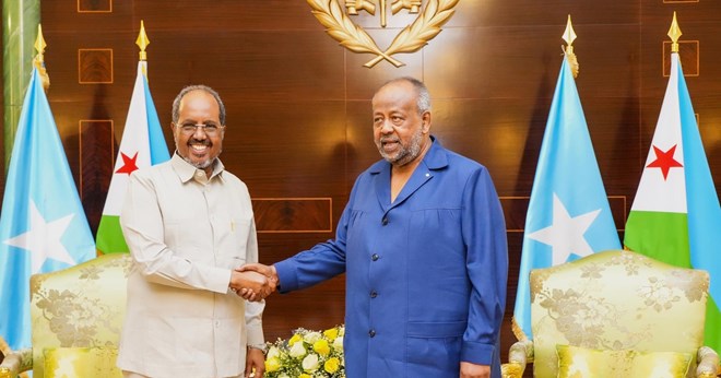 Khamiis, April 3, 2025 (HOL) - Madaxweynaha Soomaaliya Xasan Sheekh Maxamuud oo shalay Booqasho ku tagay dalka Jabuuti ayaa la kulmay Madaxweynaha dalkaasi Ismaaciil Cumar Geelle waxaana ay kawada hadleen xoojinta dagaalka lagula jiro Kooxda Al shabaab.
