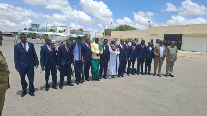 Wasiirrada Arrimaha Gudaha, Madaxtooyada, Duulista iyo Hawada, iyo taliyeyaasha ciidamada Booliiska iyo Millateriga ayaa maxaabiistan kusii sagootiyay garoonka diyaaradaha magaalada Hargeysa ee Cigaal.