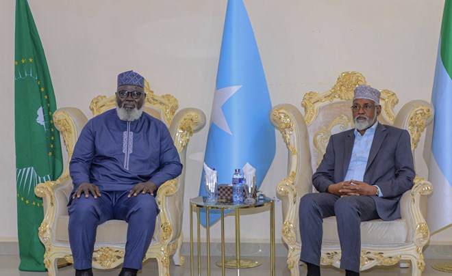 Isniin, Agoosto 4, 2025 (HOL) - Madaxweynaha Dowladda Jubaland, Axmed Maxamed Islaam (Axmed Madoobe), ayaa maanta xarunta madaxtooyada ku qaabilay Ergayga Gaarka ah ee Midowga Afrika u qaabilsan Soomaaliya, Danjire El Hadji Ibrahima Diene, iyo wafdi ballaaran oo uu hoggaaminayay, kuwaas oo booqasho rasmi ah ku tagay magaalada Kismaayo.