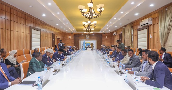 Khamiis, February 6, 2025 (HOL) - Golaha Wasiiradda Xukuumadda Fedaraalka Soomaaliya ayaa kulankooda Khamiislaha ah oo ay maanta yeesheen kaga hadlay xaalada guud ee dalka, gaar ahaan howlgalada culus ee ka dhanka ah Daacish ee ka socda buuraha Calmiskaad ee gobolka Bari.