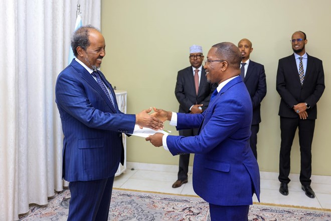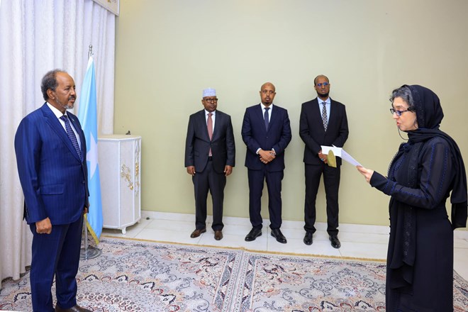 Madaxweyne Xasan Sheekh Maxamuud ayaa u sheegay Safiiraddaan muhiimada ay leedahay xoojinta xiriirka laba geesoodka ah ee Soomaaliya la leedahay dalalka ay ka socdaan, isagoona faray in la adkeeyo iskaashiga diblomaasiyadda, dhaqaalaha, horumarka iyo amniga.