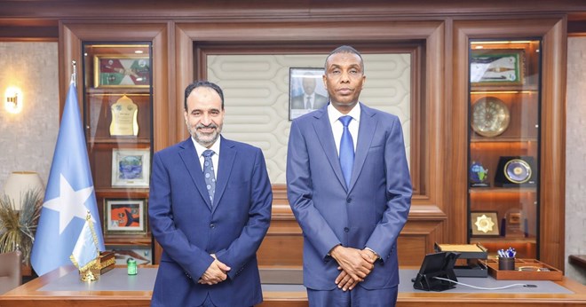 Sabti, Luulyo 19, 2025 (HOL) - Raysal Wasaaraha Xukuumadda Federaalka Soomaaliya Xamse Cabdi Barre ayaa maanta xafiiskiisa magaalada Muqdisho ku qaabilay Danjiraha Ururka Jaamacadda Carabta u qaabilsan Soomaaliya Cabdalla Cuteybi.