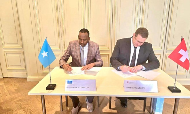 Arbaco, Luulyo 23, 2025 (HOL) - Dowladda Soomaaliya iyo dowladda Switzerland ayaa kala saxiixday heshiis iskaashi oo cusub, kaas oo lagu horumarinayo adeegyada socdaalka iyo amniga xuduudaha.