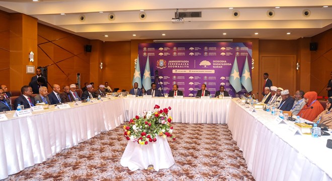 Isniin, Juun 16, 2025 (HOL) - Madaxweynaha Soomaaliya, Xasan Sheekh Maxamuud, ayaa si rasmi ah u furay Madasha Wadatashiga Qaran oo looga arrinsanayo mustaqbalka siyaasadeed ee dalka, isagoo madasha ka jeediyay khudbad uu diiradda ku saarayay adkaynta midnimada qaranka, dhamaystirka dastuurka, hannaanka doorashooyinka, dagaalka ka dhanka ah argagixisada iyo xoojinta dowladnimada.