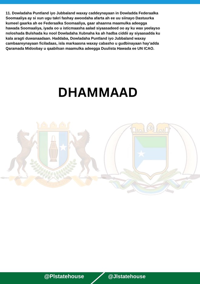 newsinsidePuntland iyo Jubbaland waxay si gaar ah uga cawdeen maamulka hawada Soomaaliya, iyagoo ku eedeeyay Dowladda Federaalka inay si sharci-darro ah ugu takri-fashay awoodaha maamulka hawada. Waxay intaa ku dareen inay cabashadooda si rasmi ah ugu gudbiyeen hay’adda Qaramada Midoobay ee qaabilsan arrimaha duulista rayidka ah.
