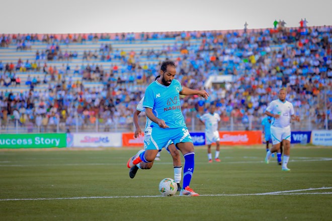 Ciyaarta xiisaha leh ayaa dhex martay xiddigihii hore ee Ocean Stars iyo xiddigaha ajaanibta ah ee ka ciyaara horyaalka Soomaaliya, oo ay wehliyeen saddexda halyeey ee caalamiga ah, Ciyaarta ayaa kusoo idlaatay 8-4 oo ay guushu ku raacday xidigihii hore ee Afrika.