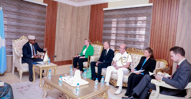 Khamiis, May 8, 2025 (HOL) - Wasiirka Gaashaandhigga Soomaaliya Axmed Macallin Faqi ayaa magaalada Muqdisho waxa uu kulan kula yeeshay wafdi heer sare ah oo ka socday dowladda Ingiriiska oo ay hoggaaminaysay Danjire Harriet Matthews, Agaasimaha Guud ee Afrika iyo Ameerika ee Xafiiska Arrimaha Dibadda iyo Barwaaqa Sooranka, waxaana ay kawada hadleen arrimaha amaanka iyo taageerada UK ee Soomaaliya siiso.