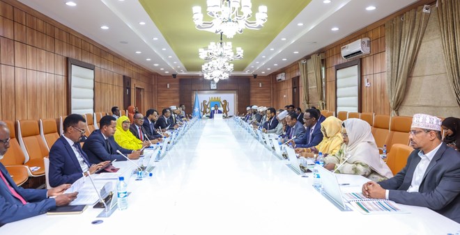 Khamiis, October 30, 2025 (HOL) - Golaha Wasiirrada Xukuumadda Soomaaliya ayaa maanta yeeshay kulankoodii toddobaadlaha ahaa, kaas oo uu guddoominayey Ra’iisul Wasaaraha Xukuumadda, Xamsa Cabdi Barre, waxaana lagu ansixiyay qodobo muhiim ah oo ay ka mid yihiin Xeerka Qoondada Miisaaniyadda Qaranka ee 2026, iyo laba heshiis is-afgarad oo Soomaaliya kala saxiixatay dowladaha Uganda iyo Qatar.