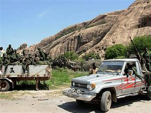 Transitional Federal Government soldiers patrol in Burhakaba, Somalia, Tuesday, Dec 26, 2006. Islamic fighters were in a tactical retreat Tuesday, a senior Islamic leader said, as government and Ethiopian troops advanced on three fronts in a decisive turnaround in the battle for control of Somalia. (AP Photo)
