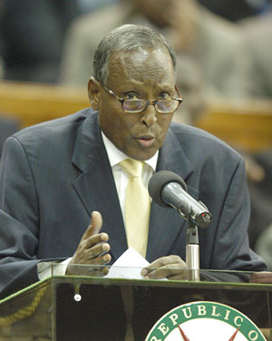 Before he boarded his car, he said, he was seen out of the temporary parliament building by his prime minister, Mr Mohamed Ghedi and the Speaker, Mr Shariff Hassan Sheik Adan.