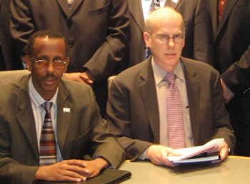 | Xoghayaha Joogtada ee WAD Mr. Ali Feysal iyo Agaasimaha Guud ee Waxaadda Afrika Mr. Ferguson |