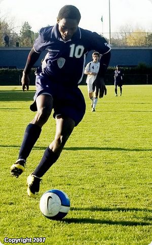 He runs the pitch at BHS in cleats and a navy-blue Seahorse uniform, kicking a regulation ball. His cell-phone message ends with "Peace."