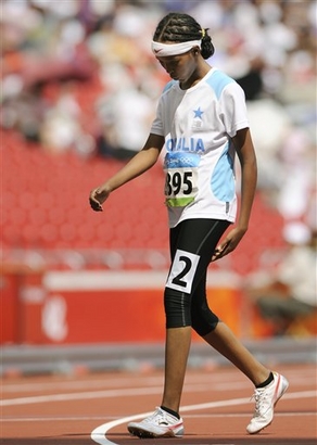 She smiles when she says this, sitting a stone’s throw from a Somalian flag that she and her countryman Abdi brought to these Games. They came and went from Beijing largely unnoticed, but may have been the most dignified example these Olympics could offer.